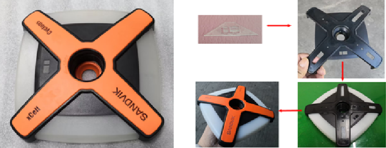 To solve the problem of two-color mold, before mold start manufacturing, the DFM analyse is most important. Part material need design uniforml, choice an correct injeation gate position, good position for shut off the material between the diffrent color or material, precision of mold manufacturing processing, then can get an very good product. For these condition, it also need very experienced engineer and mold maker team. Below picture is an 4-colour product. First make an transparency PC lens, then put it into ABS material overmolding, then put it into acrylic material overmolding, then overmolding with TPE soft material. |